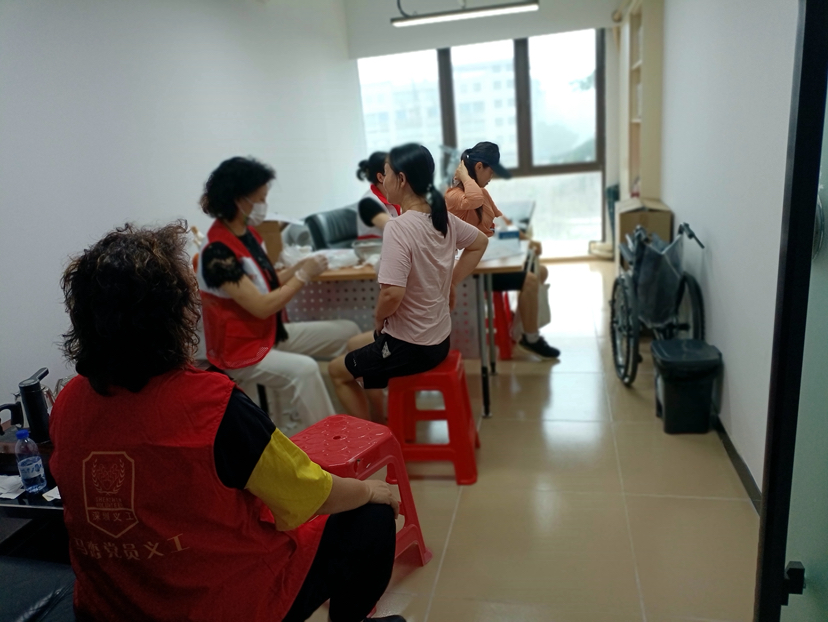 活动现场,中医外治研学者带领有医学知识的志愿者们,凭借对中医知识的掌握精准把控贴敷穴位与时长,耐心解答居民疑问;其他志愿者们则热心穿梭其间,引导排队登记、协助老人小孩就座、分发健康小贴士,大家分工协作,默契配合,现场秩序有条不紊。