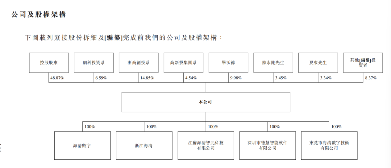 此外,浙商创投系合计持有海清智元约14.85%股份,为外部第一大股东;毕沃德持股9.98%;朗科投资系合计持股6.59%;高新投集团系合计持股4.54%;盈科值得持股1.41%;福泉投资持股0.84%;小禾创投持股0.20%。