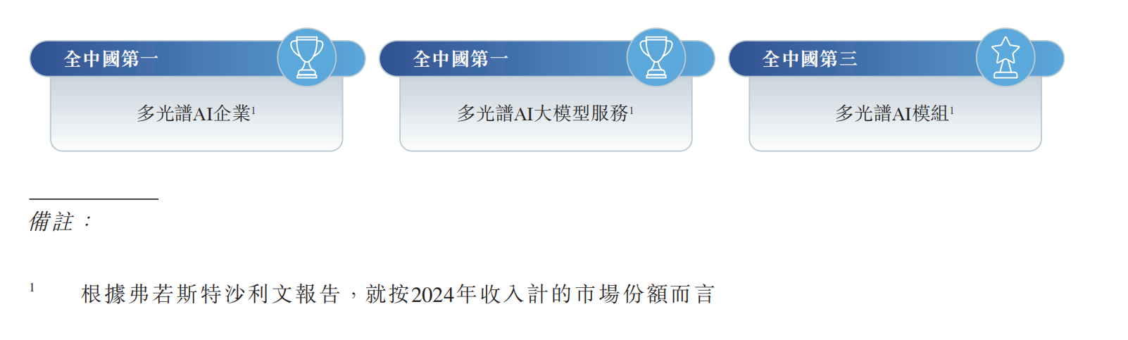 中国多光谱AI行业总排名第一,市场份额3.5%;中国多光谱AI大模型服务排名第一,市场份额11.8%;中国嵌入式多光谱AI模组排名第三,市场份额6.6%。公司客户已超3000家,既包括国营电信运营商,也有领先的上市AI公司。
