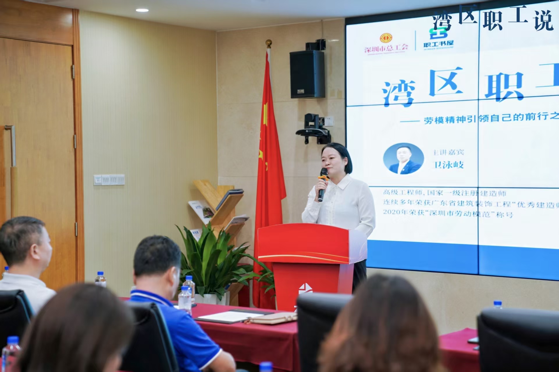 本期活动以“劳模精神引领自己的前行之路”为主题,特邀2020年深圳市劳动模范、中深装建设集团工程管理中心总监卫泳岐担任主讲嘉宾。卫泳岐通过“成长故事+技术攻坚+项目实践”的多维度分享,为在场职工带来了一场关于坚守、创新与奉献的沉浸式讲堂。