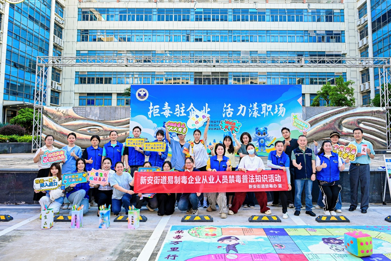 为进一步增强企业员工的禁毒意识,提高识毒、防毒、拒毒能力,营造健康无毒的工作环境,8月8日,新安街道禁毒办联合司法所深入高新奇工业园区,共同举办了“拒毒驻企业,活力漾职场”主题禁毒普法宣传活动,让300名企业职工筑牢防毒拒毒的思想防线。