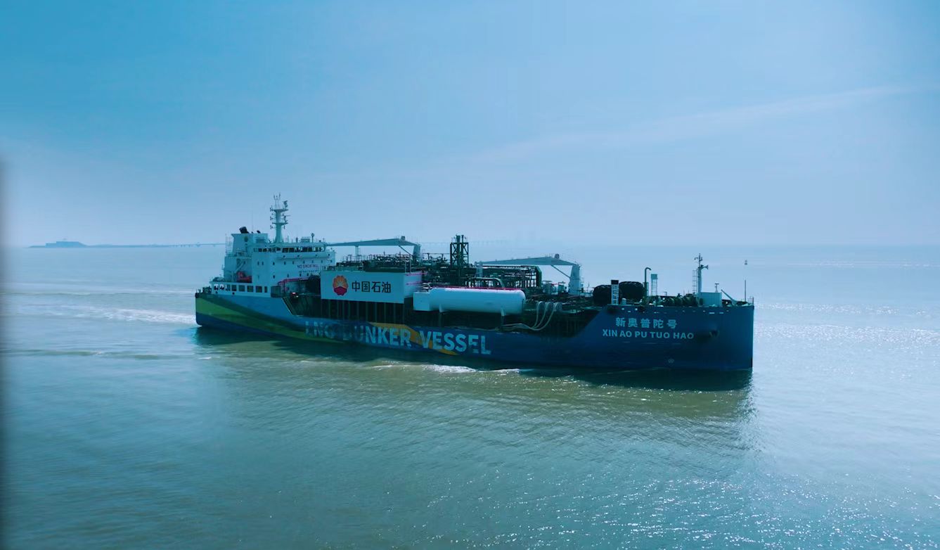8月8日晚至9日凌晨,招商局港口集团股份有限公司深圳西部港区繁忙作业的灯光与珠江口夜航船舶灯火交相辉映,深圳中石油国际液化天然气加注公司加注船“新奥普陀号”在深圳西部港区为15万吨级集装箱受注船“达飞诚实轮”试加注LNG燃料,并顺利实施6700立方米LNG燃料加注补给。