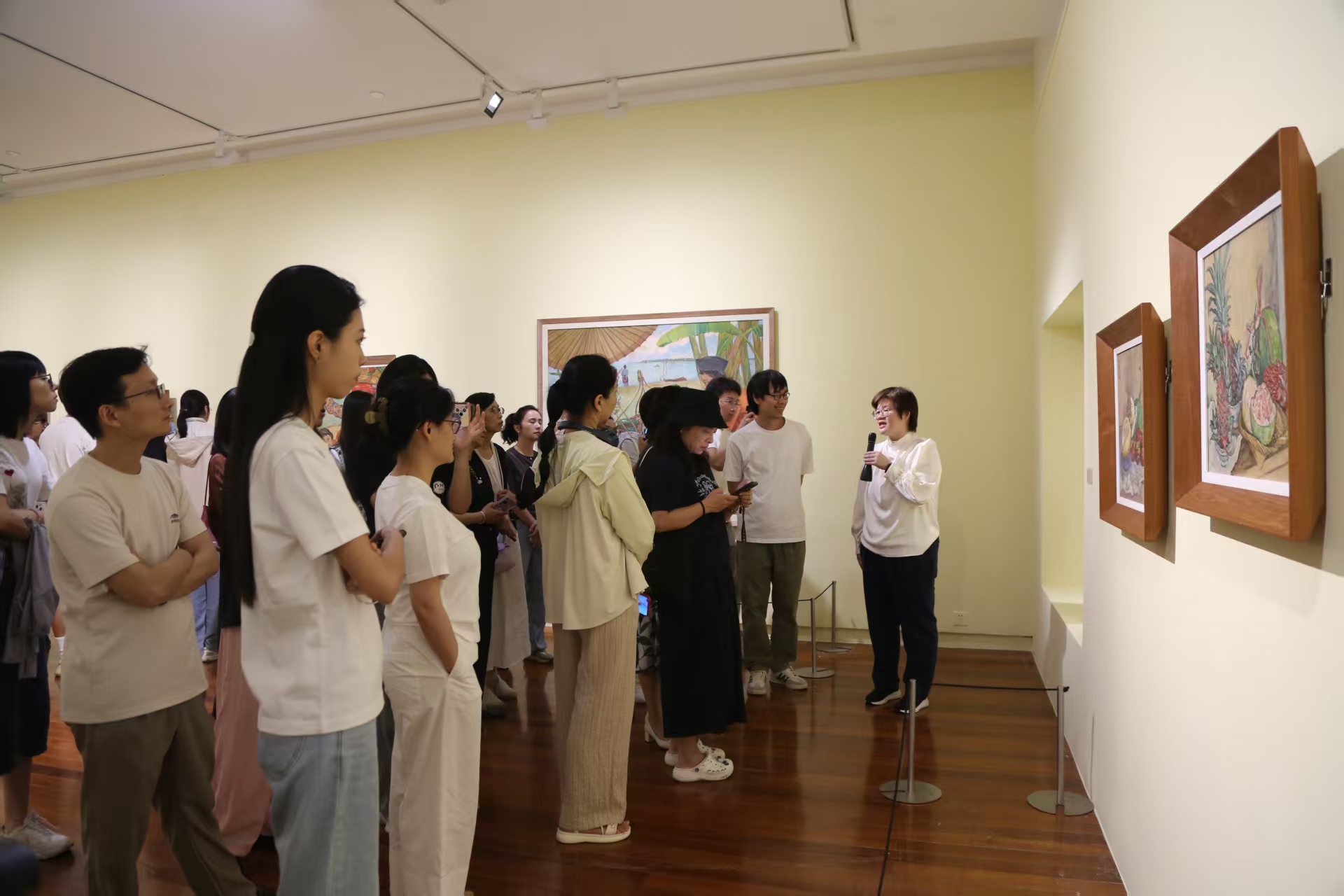 展览开幕前,新加坡国家美术馆策展人林淑娟为观众带来精彩导览,引领观众穿越张荔英笔下的市井烟火与异域风光,感受“椰林树影”间的生命律动。据悉,此次展览将持续至12月7日,展览期间,主办方也将推出多场相关公教活动。
