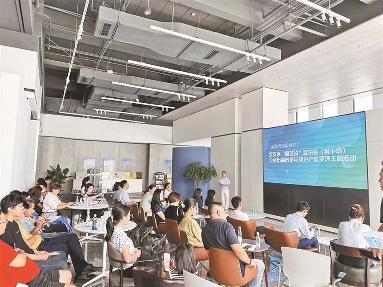 为切实帮助中小微企业破解融资难题,助力合规出海并盘活知识产权价值,8月7日下午,“金融驿站服务日”——宝安区“园区贷”宣讲会(第十场)企业出海政策与知识产权变现主题活动,在满京华科技创新园举行,吸引了区内多家企业代表积极参与。
