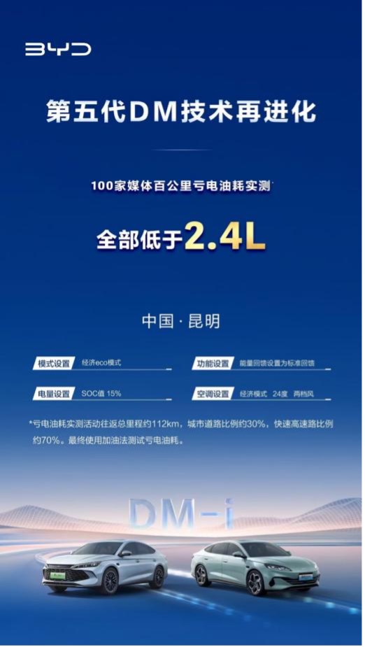 油耗低不低,实测见真章。第五代DM技术再进化后,经过100家媒体,在一车两人、全程空调24°C、两档风的测试条件下,以最接近用户日常用车的状态,进行包含高速加城区道路的亏电油耗实测。最终秦L DM-i、海豹06DM-i所有亏电油耗成绩全部低于2.4L,实测成绩证明秦L DM-i、海豹06DM-i进化后省油能力更加强大。