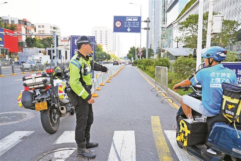 交警现场引导骑行市民走非机动车道。