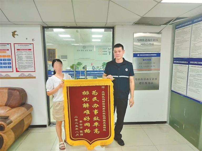 近日,马田街道南庄社区网格工作站收到了群众姜女士送来的锦旗。锦旗上“为民办事效率高 排忧解难好网格”的字样,满是对网格员高效化解其退费纠纷的感激之情。
