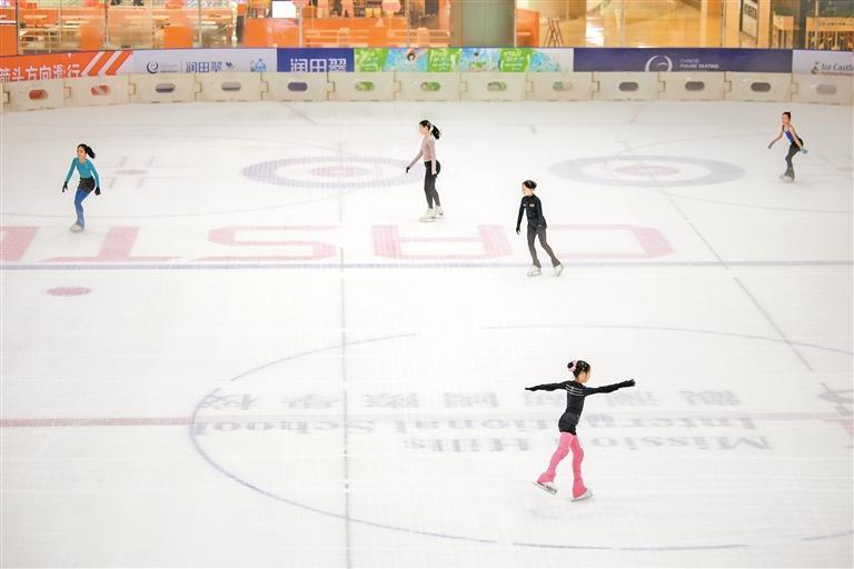 ▲观澜湖新城溜冰场内,少年们在冰场上追逐着风与自由,笑声与冰屑共舞。