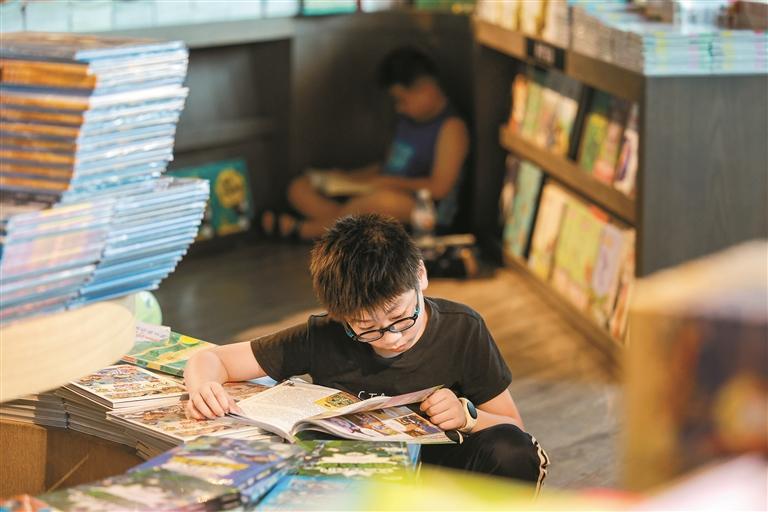 深圳书城龙华城的书架间,少年们沉浸在书海当中。