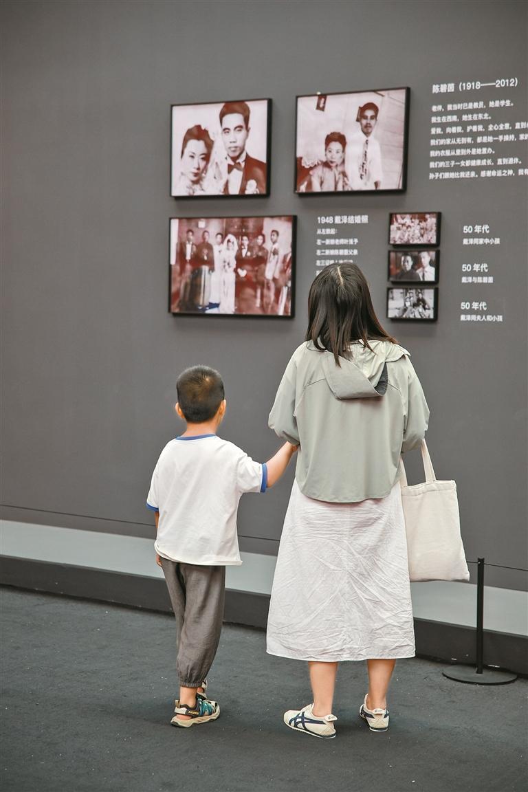 ▲深圳美术馆(新馆)展厅里,少年与母亲沉浸式观展。