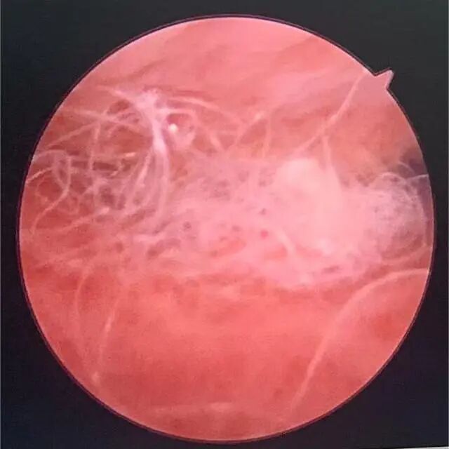 医生在阴道镜下用专门的工具(异物钳),小心翼翼将这团顽固的棉絮样异物完整地取了出来,并用碘伏溶液彻底冲洗了阴道。