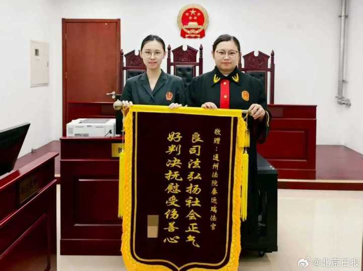 前不久,秦运瑞接到小刘的电话,电话那头,小刘开心地说:“秦法官,我的案子二审维持原判了,我心里的石头也终于落地了。我从没想过因为照顾两位素不相识的老人,却遭受这样的非议,法院的判决让我看到了希望,让我觉得很温暖。这个事情结束了,我接下来要开始找工作,继续好好生活。”随后,小刘把一面锦旗送到了法院。