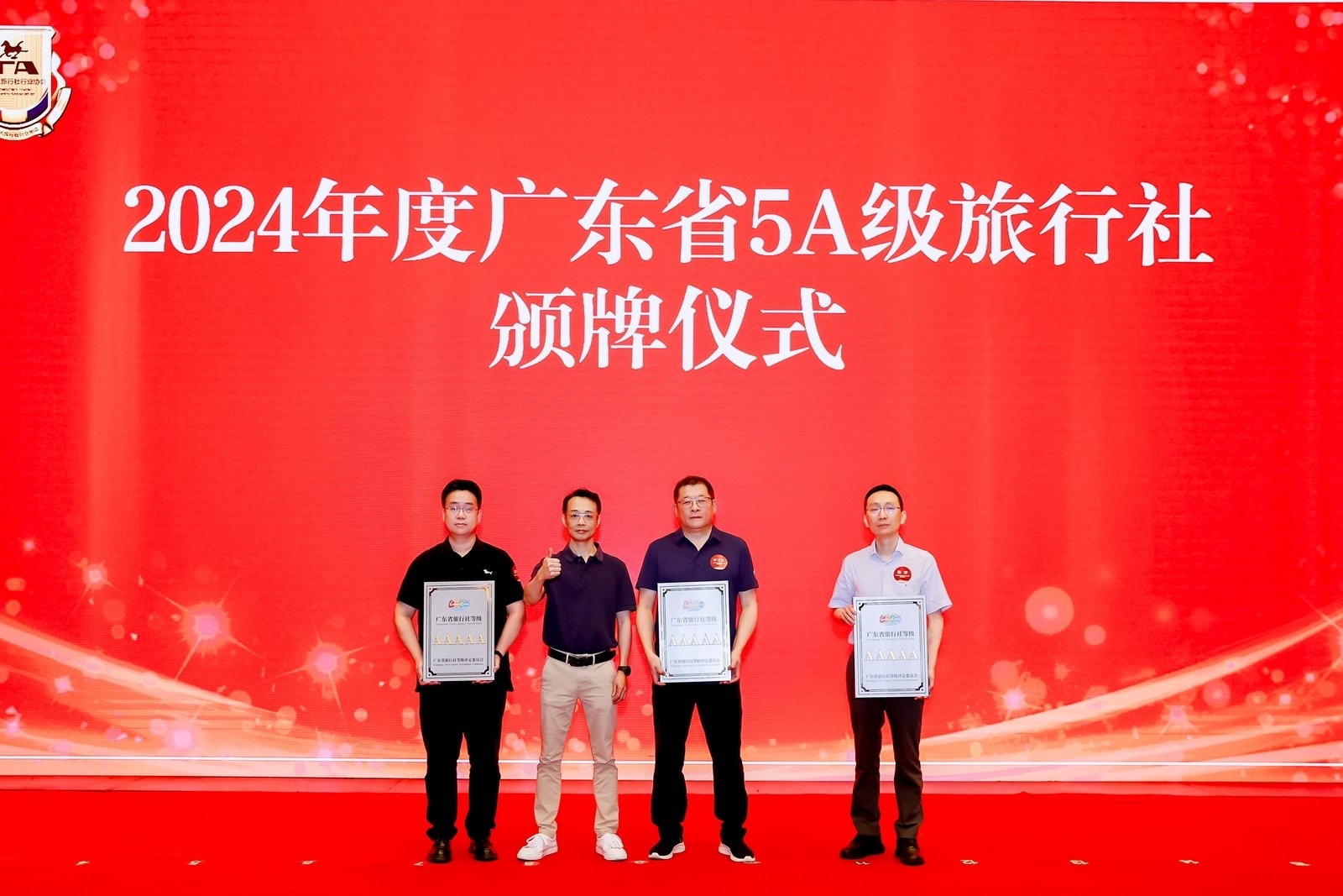 会上,还举行了2024年度广东省A级旅行社颁牌仪式。2024年,我市共有21家旅行社凭借卓越的实力、优质的服务获评广东省A级旅行社,其中5A级3家,4A级8家,3A级10家。