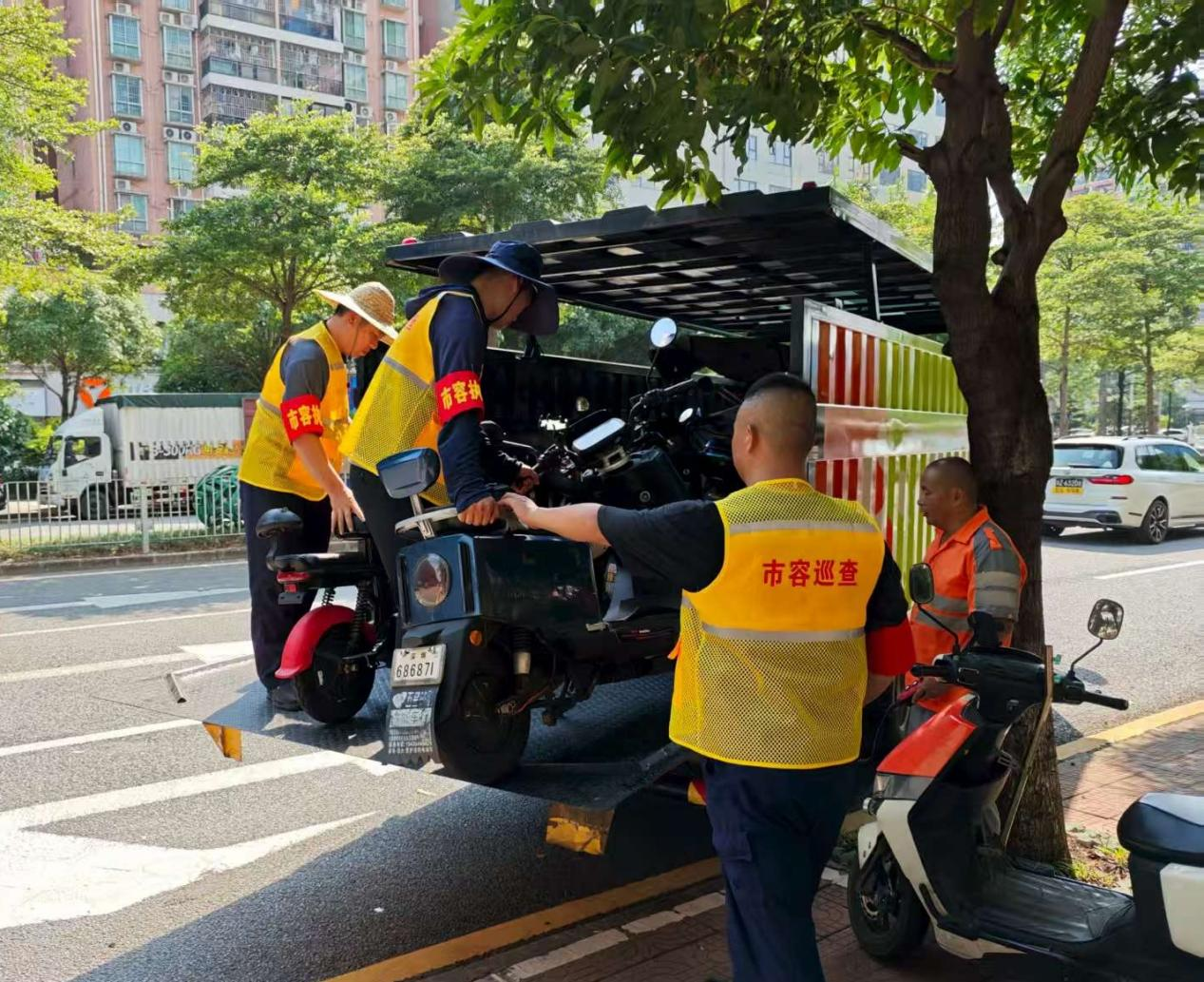 为进一步提升市容环境精细化管理水平,西乡街道综合行政执法队为25个社区的300余名整治队员统一配发了标识鲜明的“市容巡查”黄马甲。身着黄马甲的队员们活跃在社区各个角落,清理垃圾杂物、规整乱停放的电动车……他们身体力行,将文明规范从口号转化为行动示范,向市民传递“环境共治、成果共享”的理念,将宣传阵地延伸至城市治理的“最后一米”。