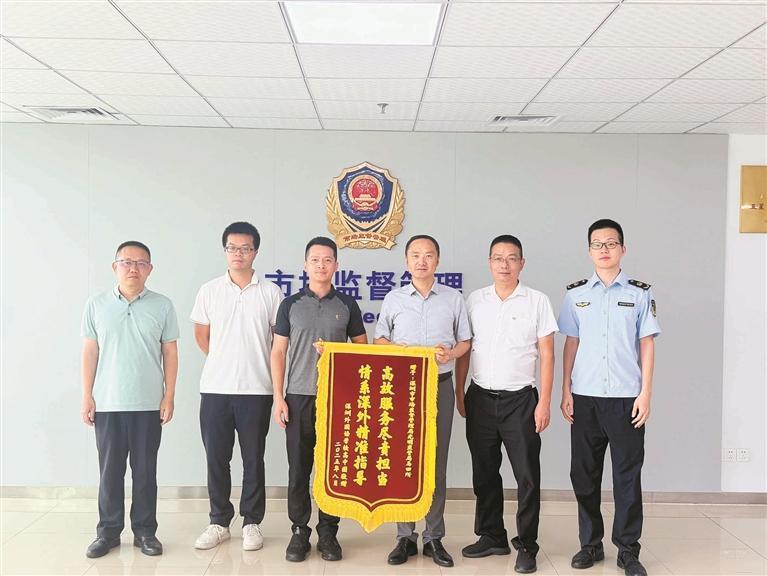 日前,深圳市外国语学校高中园向市市场监督管理局光明监管局马田所(简称“马田所”)送来一面写着“情系深外精准指导,高效服务尽责担当”的锦旗,对光明监管局及马田所长期以来在食品安全以及特种设备方面的指导表达诚挚的谢意。