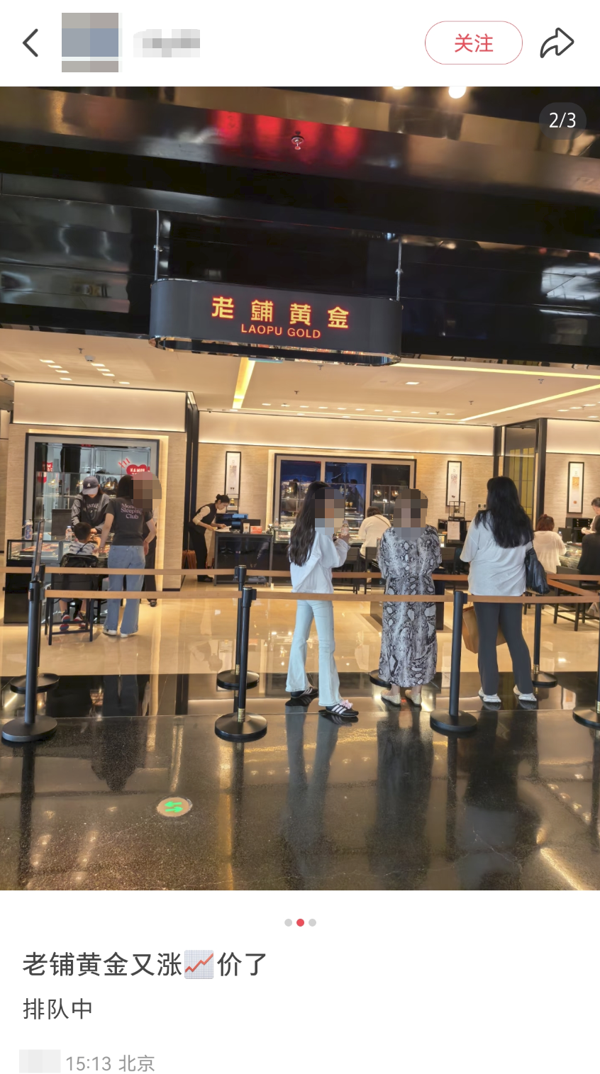 另外,有网友分享老铺黄金涨价消息,并称“排队中”。