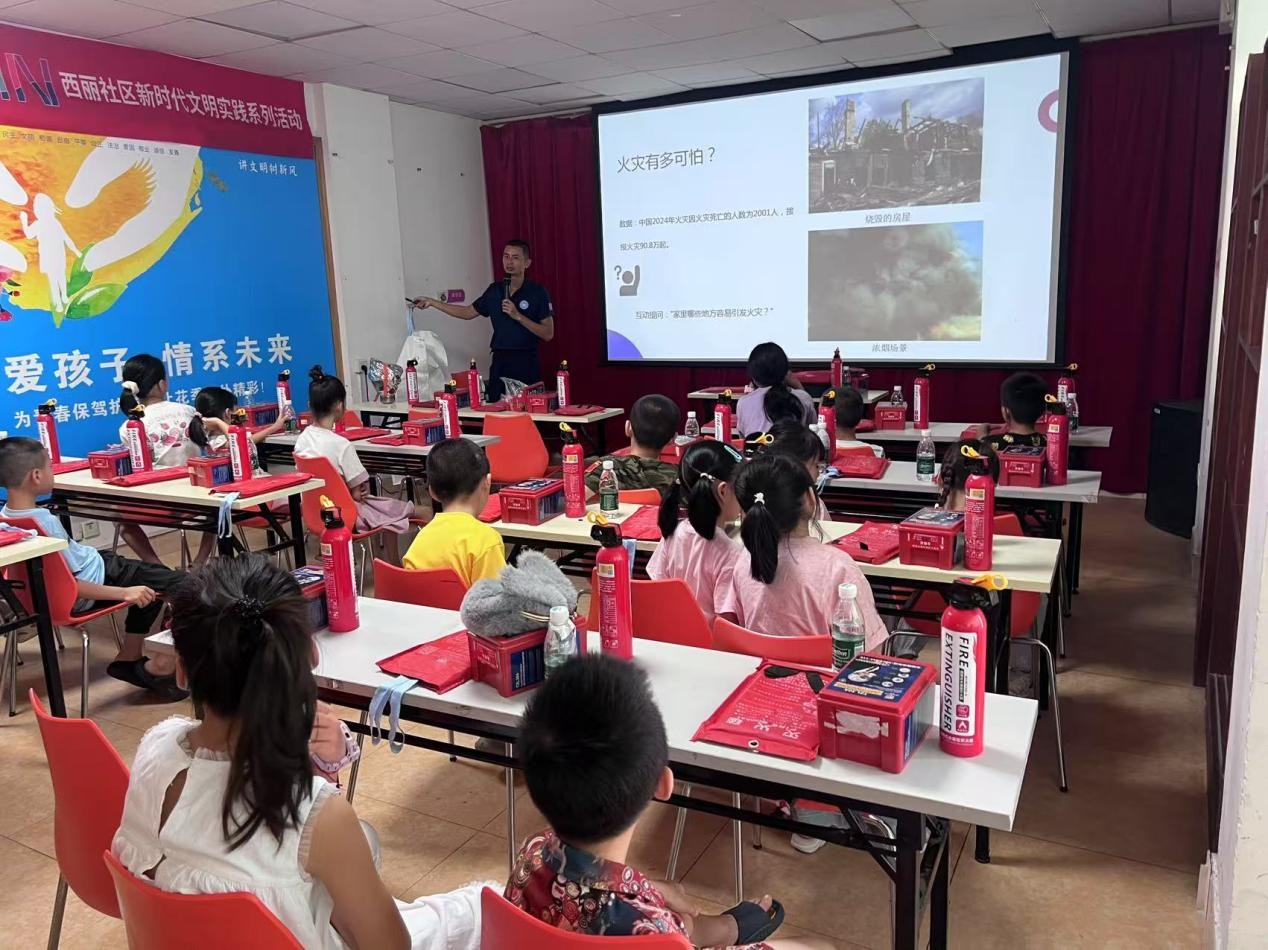 8月16日,西丽社区党群服务中心开展 “小小消防员” 体验活动,带领孩子们沉浸式学习消防知识,变身家庭安全小卫士。