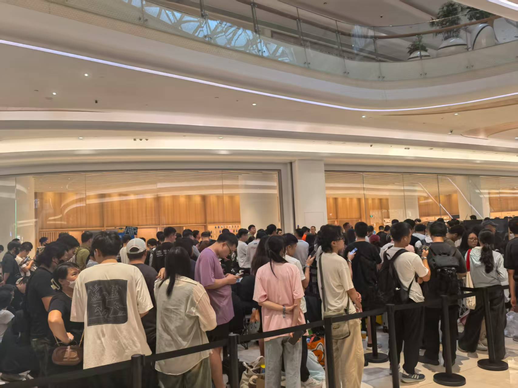 前海壹方城店位于宝安区前海壹方城的一层。16日上午9点多,记者抵达时看到,门店外已有大批消费者排队等侯,排队队伍打起“蛇饼”,现场整体秩序井然。正式开业前10分钟,工作人员走到店外,与消费者互动,现场气氛热烈。