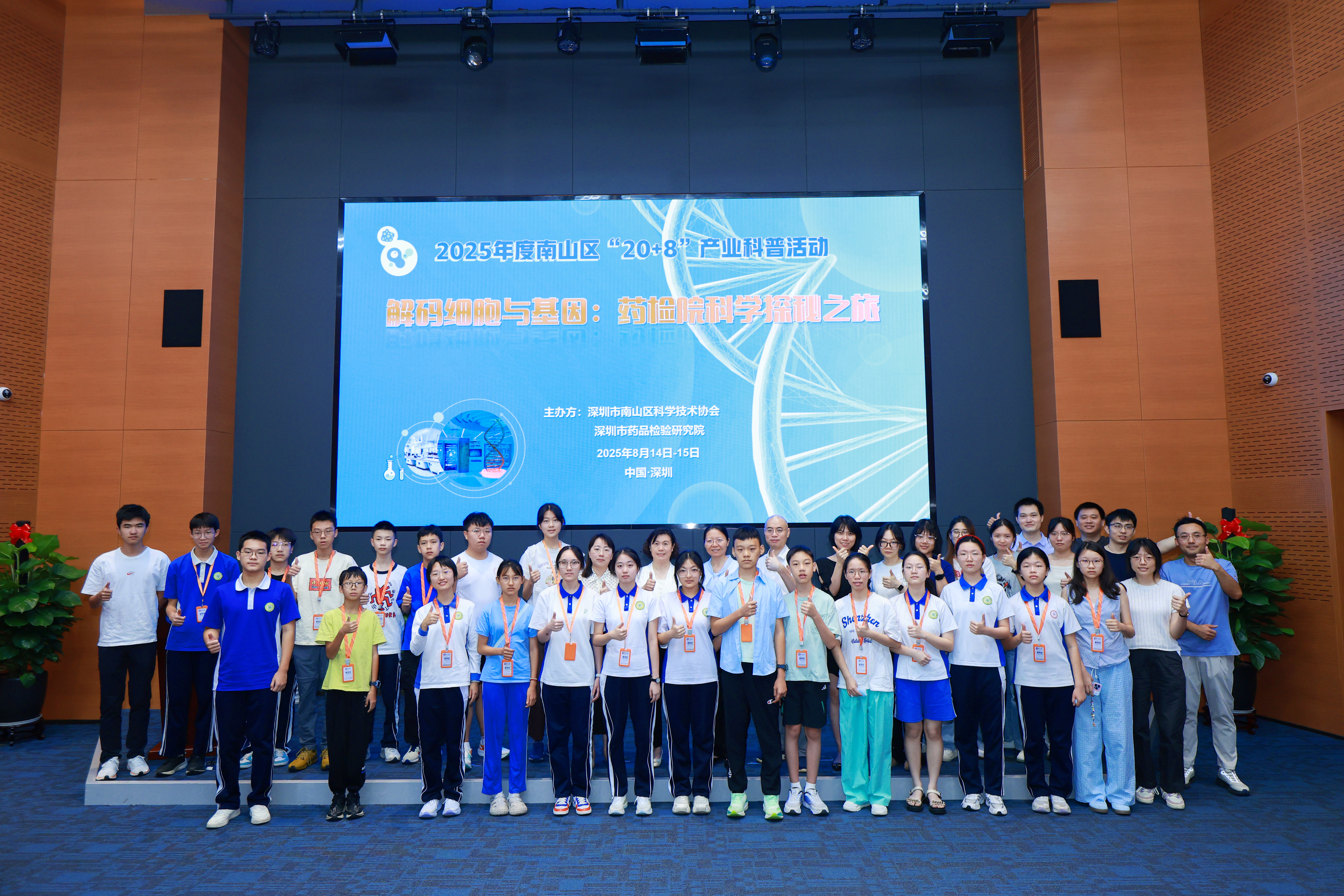 8月15日,为期两天的 “解码细胞与基因:药检院科学探秘之旅”落下帷幕。活动由深圳市药品检验研究院(以下简称深圳药检院)主办,是深圳市南山区 “20+8” 产业科普活动的重要组成部分。23名青少年科学爱好者走进深圳药检院,在沉浸式体验中揭开细胞与基因的神秘面纱,收获了一场兼具专业性与趣味性的科学盛宴。