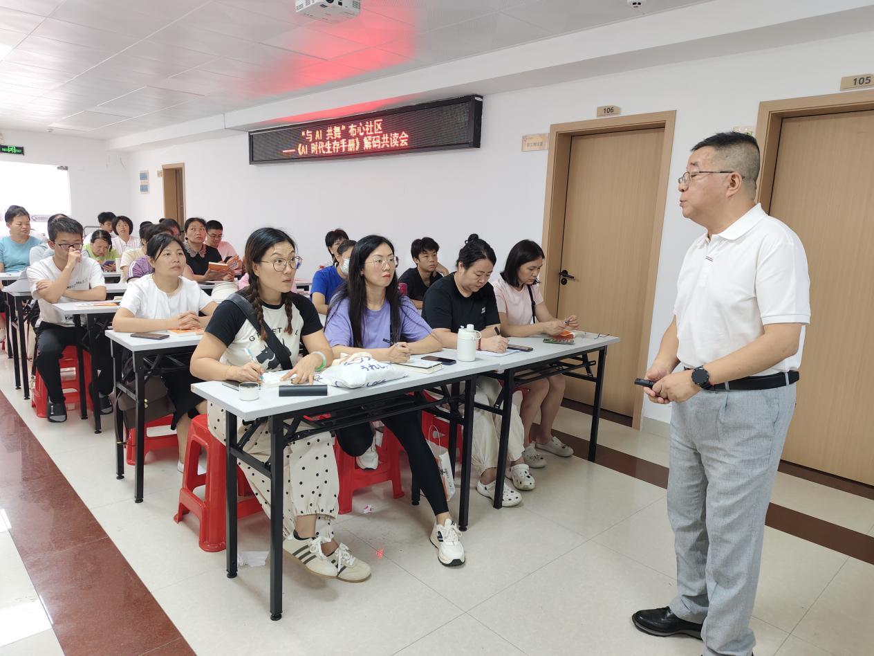 近日,新安街道布心社区工联会联合社工,在布心社区党群服务中心百姓客厅举办了主题为“与AI共舞”的《AI时代生存手册:零基础掌握DeepSeek》解码共读会活动。本次活动吸引了30名社区居民积极参与。