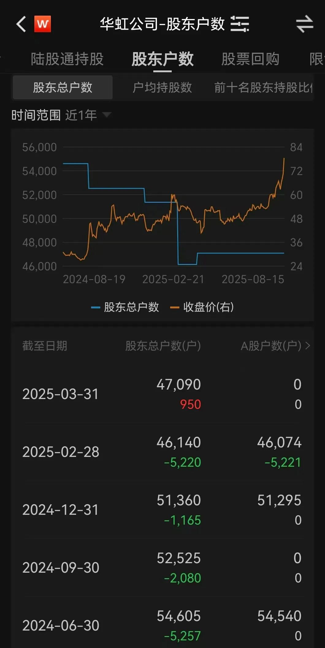 截至今年一季度末,华虹公司股东户数超4.7万。