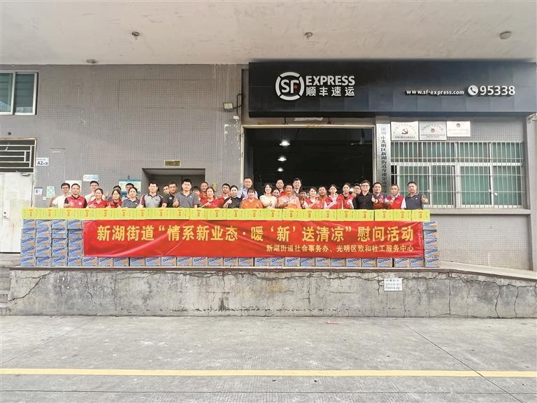 近日,新湖街道联合爱心机构致和社工服务中心,为坚守一线的劳动者开展“夏日送清凉”活动,送去800箱矿泉水与清凉茶。