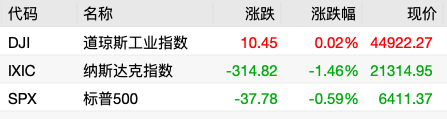 美东时间周二(19日),美股三大股指收盘涨跌不一,道指涨0.02%,标普500指数跌0.59%,纳指跌1.46%。其中,道指盘中一度创历史新高。