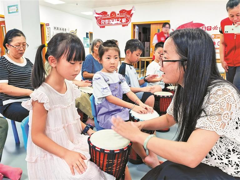 近日,新桥街道上寮社区百姓客厅活动室里鼓声阵阵、笑语盈盈,一场以“祖孙共融”为主题的非洲鼓小组活动热闹开展,9组祖孙家庭欢聚一堂,在节奏与互动中拉近心与心的距离。