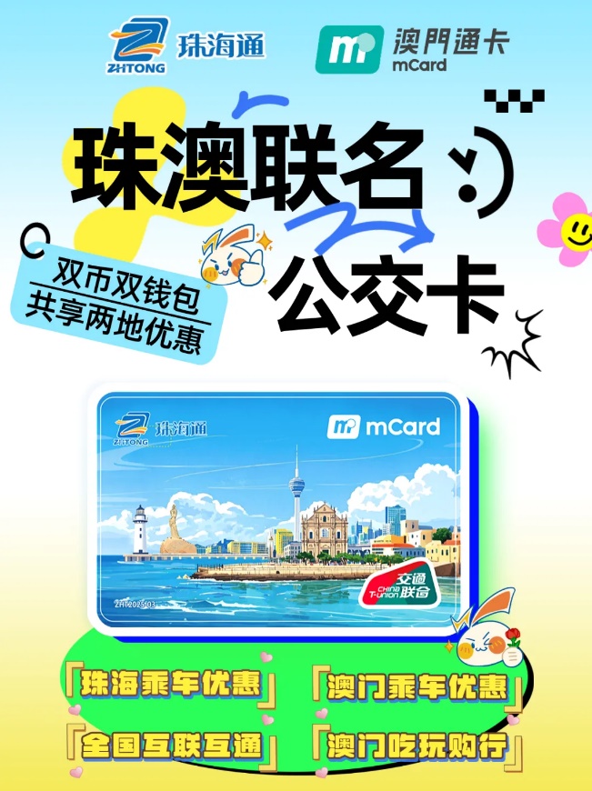 8月20日,澳门通股份有限公司(简称:澳门通)与珠海市珠海通科技有限公司(珠海公交集团下属公司,简称:珠海通)联合推出“珠澳联名公交卡”。该卡整合珠海、澳门两地公共交通互联互通功能,是粤港澳大湾区公共出行互联互通的重要成果,将为往来珠澳的居民提供了极大便利,进一步推动珠澳区域协同发展。
