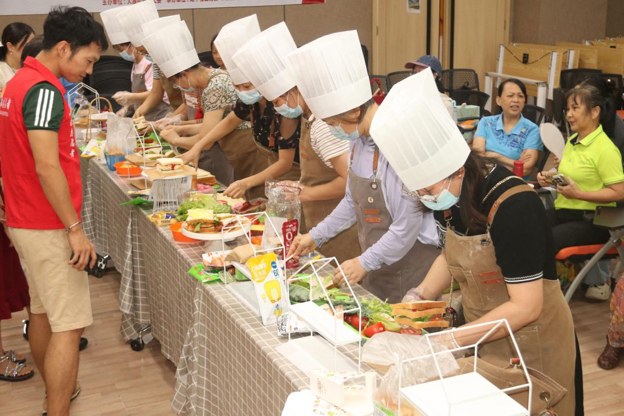 比赛正式开始前,参赛女性通过趣味游戏盲猜食材为比赛赢取食材。大家通过摸索分辨番茄、桂圆、秋葵、油桃等食材,极高的准确率让观赛居民纷纷赞叹,瞬间点燃现场气氛。随后,限时30分钟的比赛正式开启。选手们快速用有限的食材制作30份创意三明治:金黄吐司夹着彩虹蔬果塔,咸香芝士碰撞酸甜圣女果,更有选手现场演绎西红柿雕花绝技,花瓣层叠的玫瑰惊艳全场。22位居民组成的大众评审团大快朵颐,专业营养师从营养搭配到摆盘艺术逐一点评,最终诞生比赛一、二、三等奖。