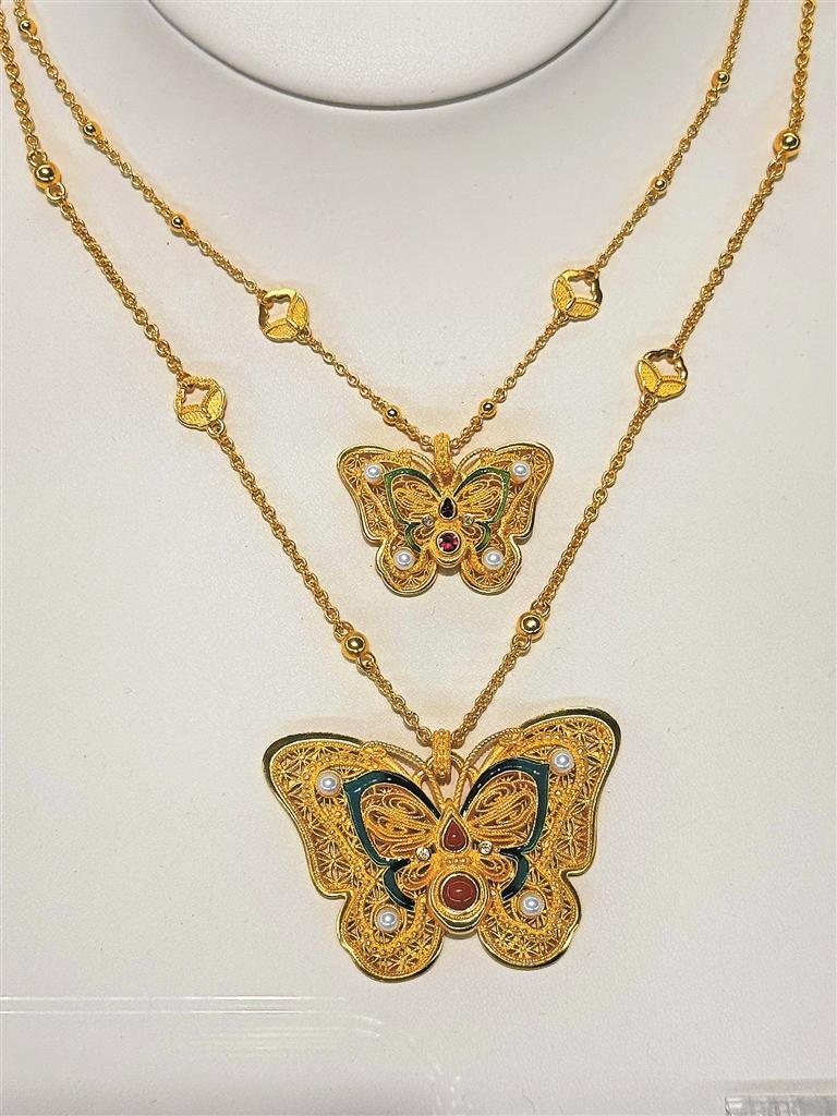 传统工艺正在经历“去繁复化”改造。花丝、珐琅、螺钿等非遗技艺,不再局限于复刻古物的厚重与华丽,而是以“轻量化”“简约化”适配现代审美。谢瑞麟集团市务副总经理陈素茹表示,非遗花丝工艺不再局限于繁复的婚嫁头饰,而是被应用于简约的手链、项链设计中,珐琅色彩从浓艳庄重转向清新淡雅,与和田玉、贝母等材质搭配,平衡了黄金的“贵气”与日常的“随性”。