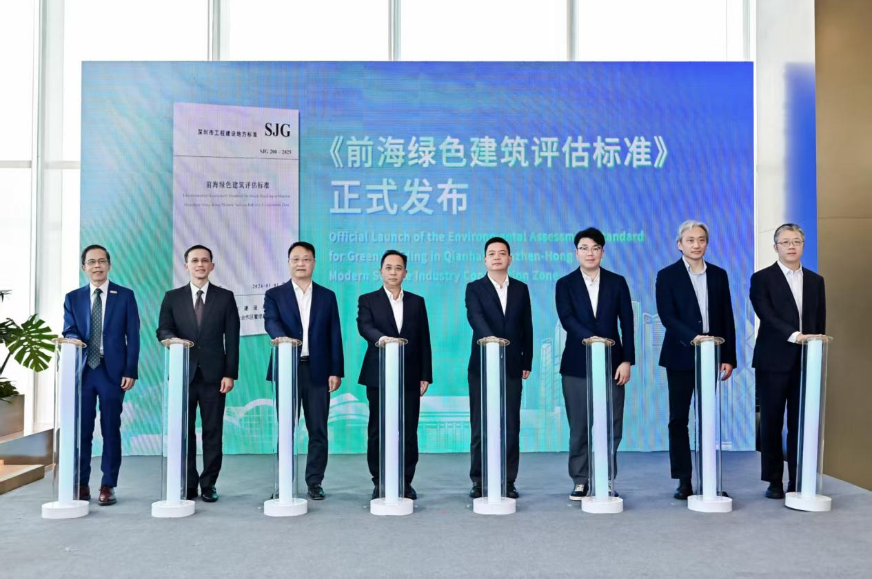 2024年9月,前海管理局与香港建筑环保评估协会签署战略合作协议,在绿色建筑评估试点、标准编制、人才培养、平台建设、绿色金融协同等五大领域建立合作框架;同年11月,联合中国建筑科学研究院、香港建筑环保评估协会编制《前海绿色建筑评估标准》,构建覆盖建筑全生命周期的评估体系;12月选取周大福金融大厦等标志性项目开展试点评估,为标准编制提供实证支撑。《前海绿色建筑评估标准》在极短时间内高效编制——从立项到发布仅历时9个月,远快于常规标准2年以上的编制周期。