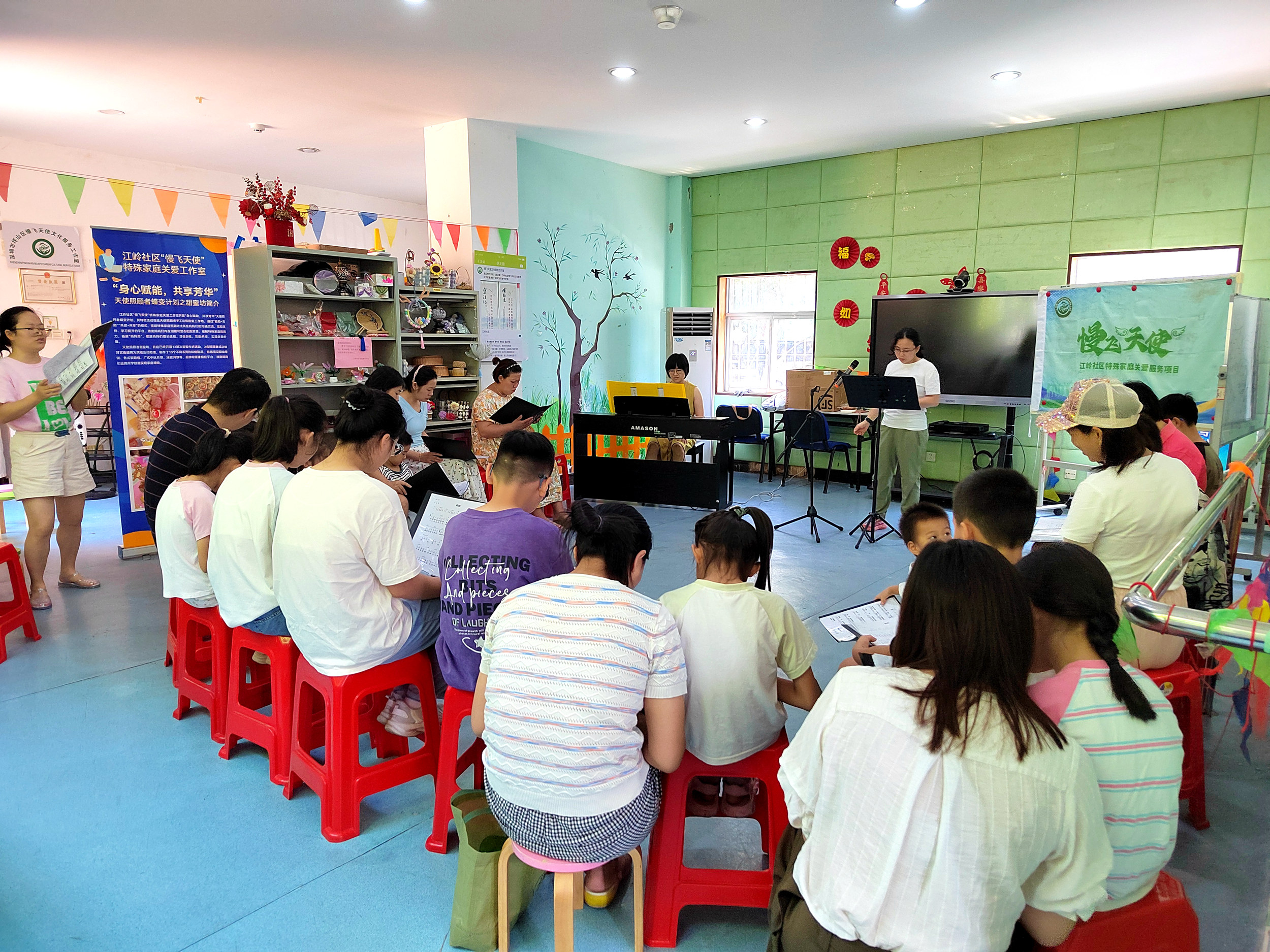 近期,每逢周末时光,位于深圳市坪山区马峦街道江岭社区的党群服务中心里总传来阵阵稚嫩又动人的合唱歌声,由江岭社区党群服务中心组织的“音爱而生·梦想乐团”特普融合合唱减压小组活动正在这里开展。活动巧妙运用音乐治疗与小组协作的方法,为特殊儿童家庭提供专业的减压支持,营造互助共融的社区文化氛围。