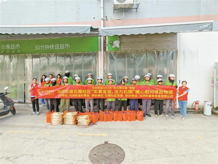 ▲石围社区为新就业群体送日常用品。