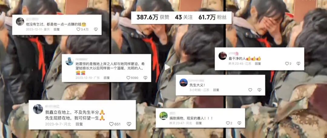 2023年12月,胡雷因一则视频走红。视频中被资助的女孩看见资助人胡雷之后泪崩的场景,令无数网友感动。