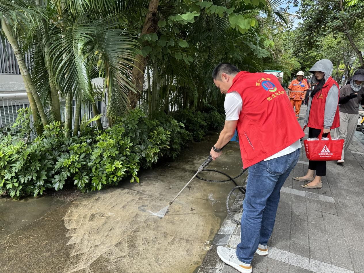 8月22 日上午,西丽街道云城社区党委联动南山区环卫总站党支部,邀请 2 位区人大代表,组织志愿者共 20 余人,开展 “维护市容环境,共建美好家园” 环境整治志愿服务活动,解决了兴科路人行道及台阶青苔问题。