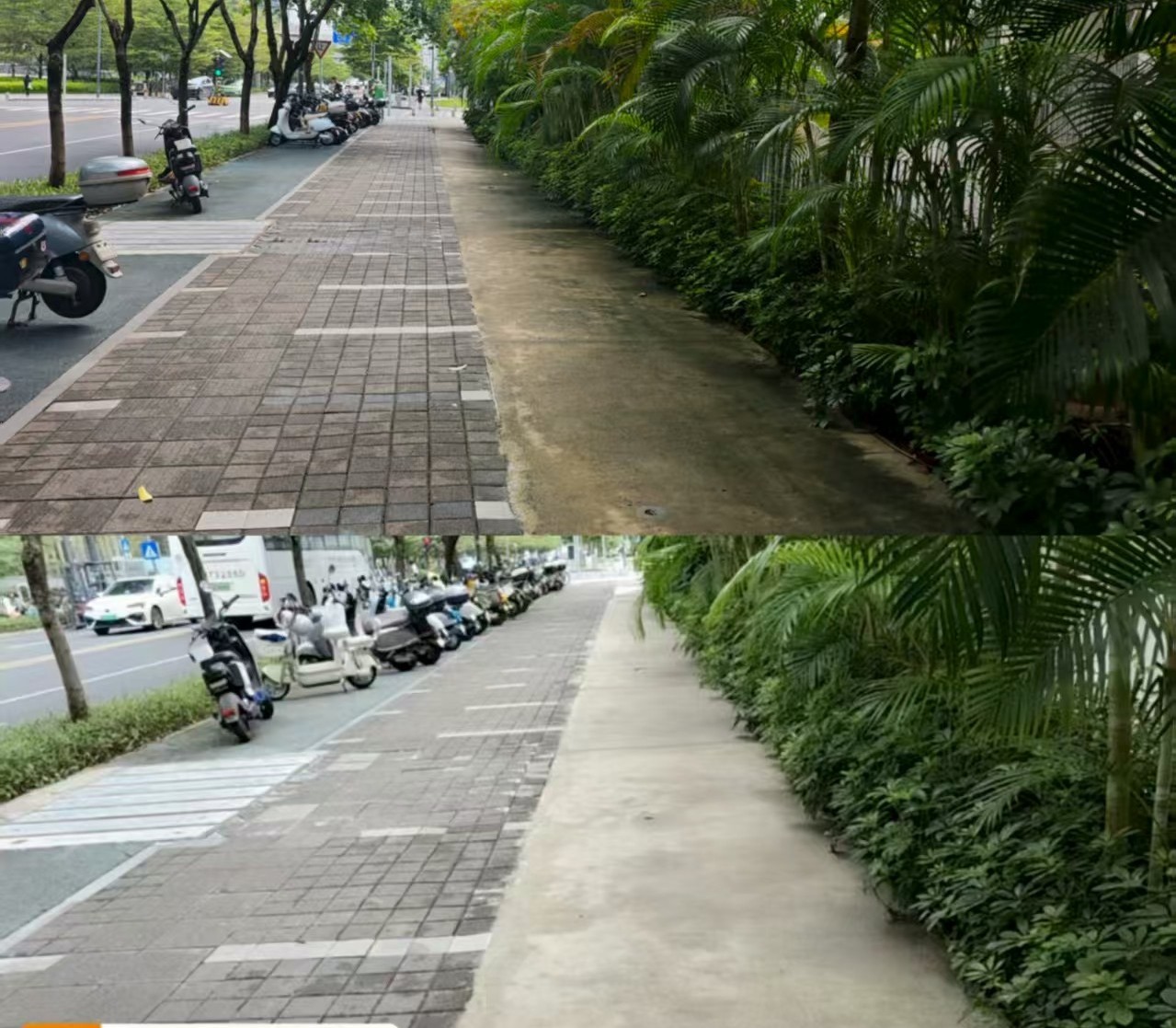 近两小时整治后,兴科路沿线约 300 米人行道青苔被清除,路面洁净平整,消除安全隐患,获居民点赞。