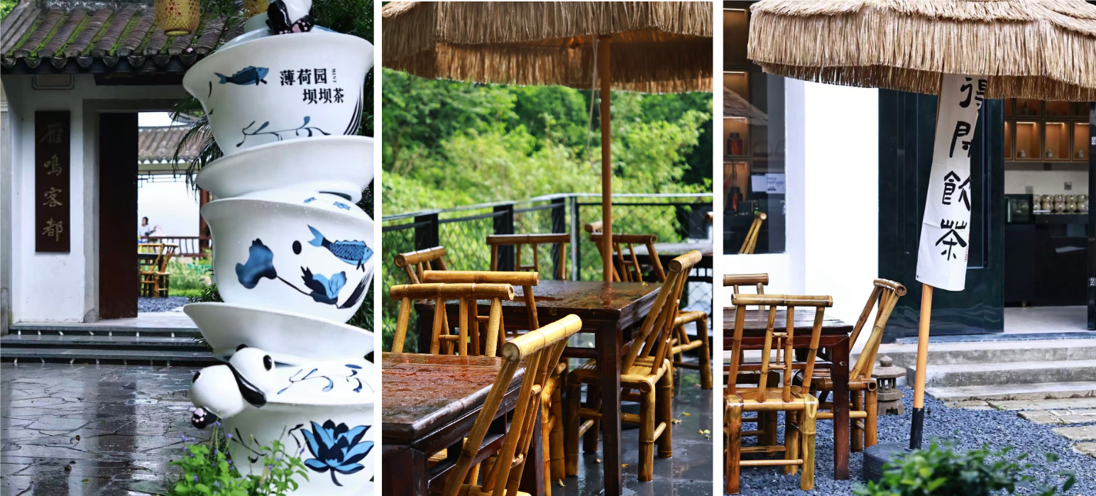 今年8月,园博园迎来“五店齐开”。薄荷园·坝坝茶以市井烟火气唤醒城市慢生活,茶客围坐院中,谈笑风生,仿佛时光在此放缓脚步。