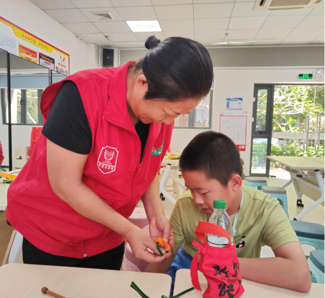 志愿者指导学员做手工。