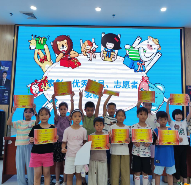 表彰环节将仪式氛围推向高潮。“伴学营”为表现优秀的学员颁发“暑期学习标兵”“暑期成长之星”奖状,致谢其积极参与;同时为全程坚守的志愿者授予“优秀伴学志愿者”“暖心陪伴志愿者”奖状,肯定其无私付出。拿到奖状的学员们笑容灿烂,纷纷举起证书与伙伴合影留念。