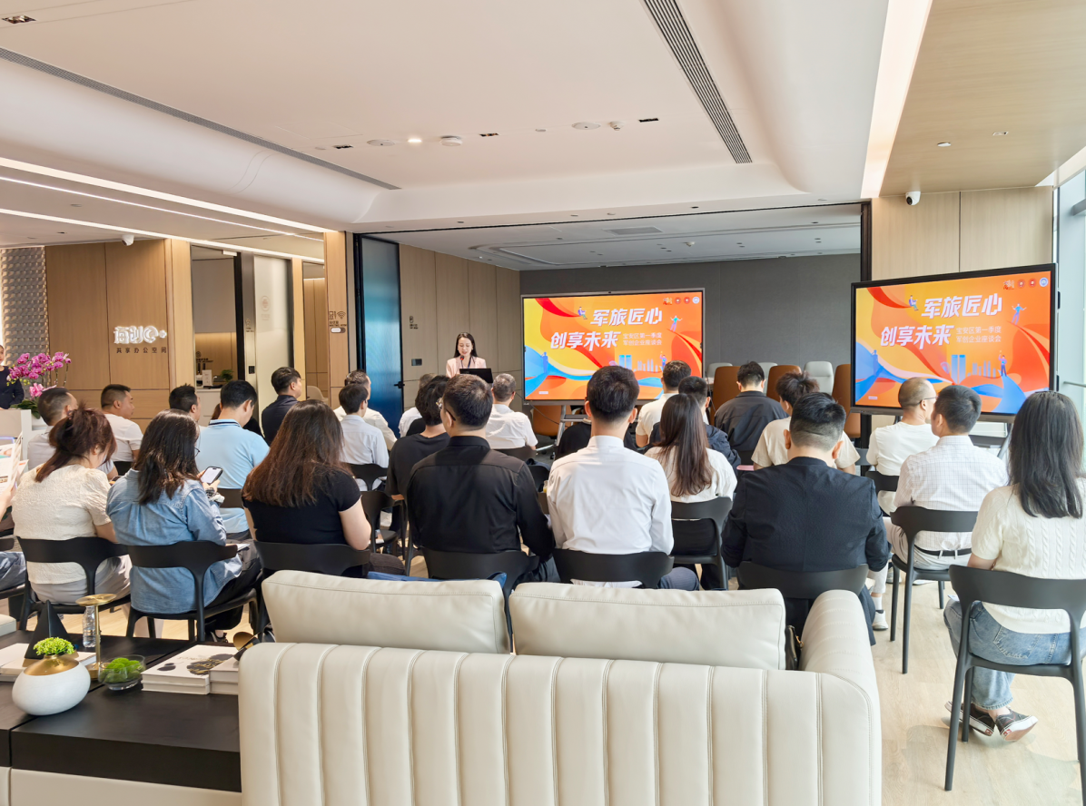在前海人寿金融中心海创e+共享办公空间联合举办宝安区军创企业座谈会。