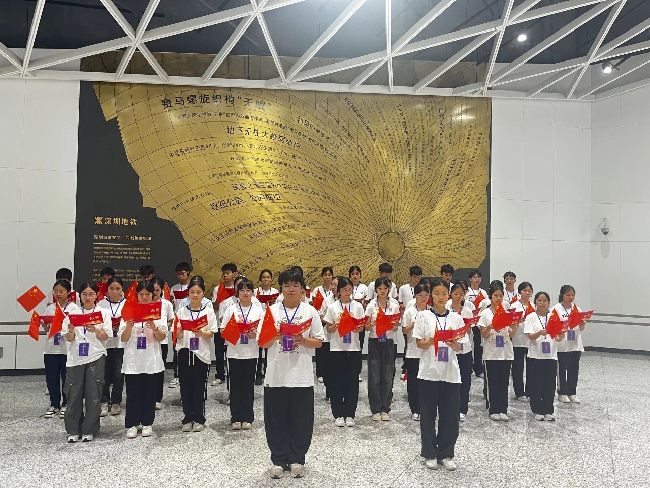 8月21日,研学团参观的“深圳之眼”成为亮点。在岗厦北枢纽,同学们齐声朗诵《在深圳之眼,我们遇见未来——广西田阳高中学子鹏城研学礼赞》,壮乡古韵与鹏城新潮在诗行间激荡交融。枢纽设计师郄雪刚老师的《“深圳之眼” 科技创新,我们一起遇见未来》讲座,引领同学们揭开建筑科技的神秘面纱,使“创新”二字在同学们心中沉甸甸地落下烙印。