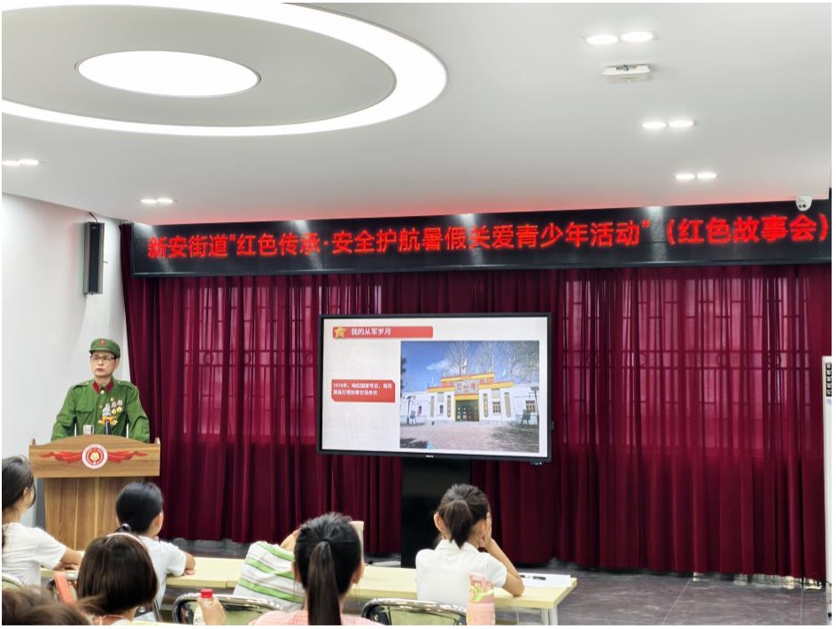 活动聚焦青少年健康成长所需,举办安全知识讲座。课程围绕防溺水、交通出行、居家安全及网络安全等主题,通过真实案例教学、情景模拟及互动问答等形式,为青少年带来一堂生动实用的安全知识课,切实提升了他们的风险防范和自我保护能力。在随后开展的红色故事分享会上,退役军人为孩子们讲述革命历史和英雄事迹。在深情讲述中,一个个可歌可泣的英雄故事,深深感染了现场青少年,让他们在接受爱国主义教育的同时,进一步坚定了理想信念,增强了历史使命感与社会责任感。