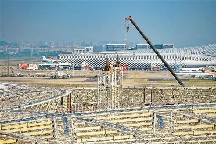 深圳宝安国际机场卫星厅计划明年交付使用,届时每年可为2200万人次旅客提供候机和中转服务。图为建设中的深圳宝安国际机场卫星厅。深圳特区报记者 刘羽洁 摄