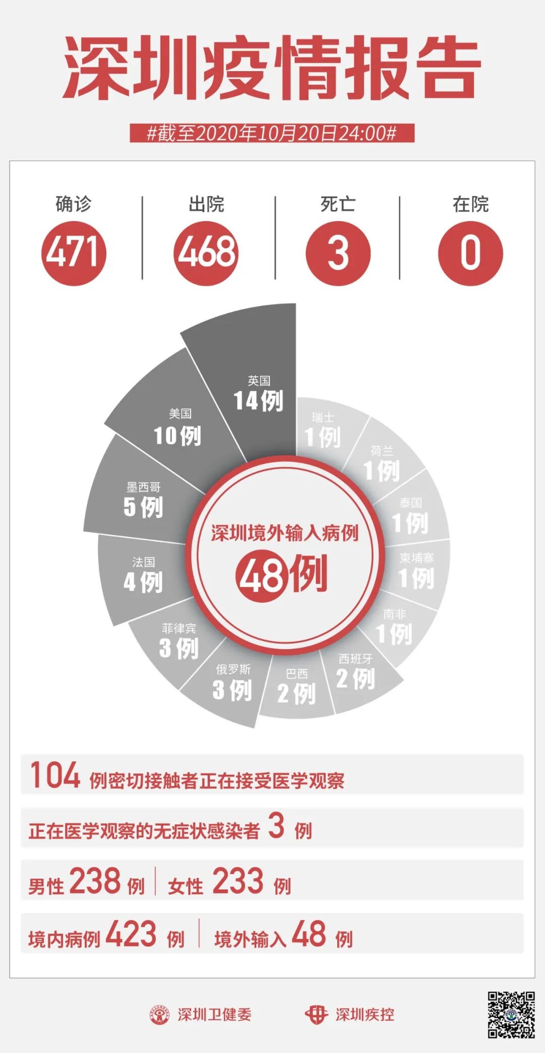 10月20日0-24时,深圳新增1例境外输入无症状感染者。