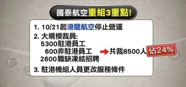 国泰表示,重组成本约22亿港元,将以公司内部资源拨付,预计重组将令集团在明年每月减少约5亿现金支出!