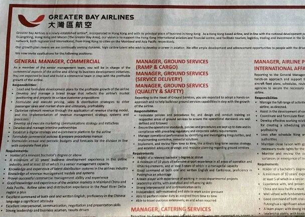 有工会透露,该航司近日已于报章刊登招聘广告,主要涉及经理级员工,认为此举有助加快取得许可证的时间。