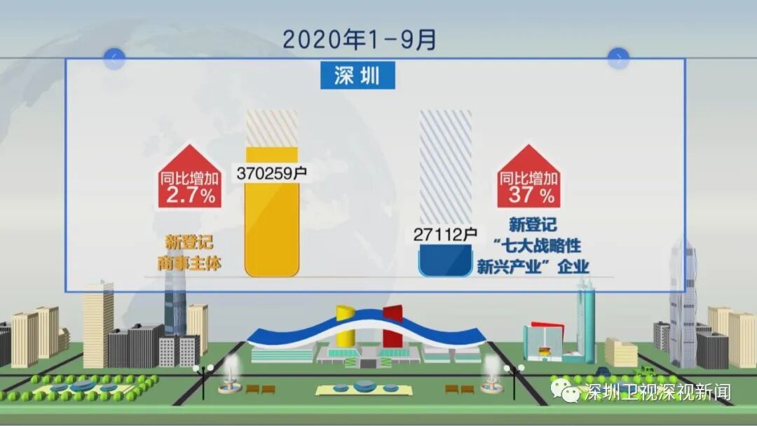 最新数据显示,今年1-9月,深圳新登记商事主体370259户,同比增长2.7%;深圳新登记“七大战略性新兴产业”企业27112户,同比增加37%,发展势头迅猛。