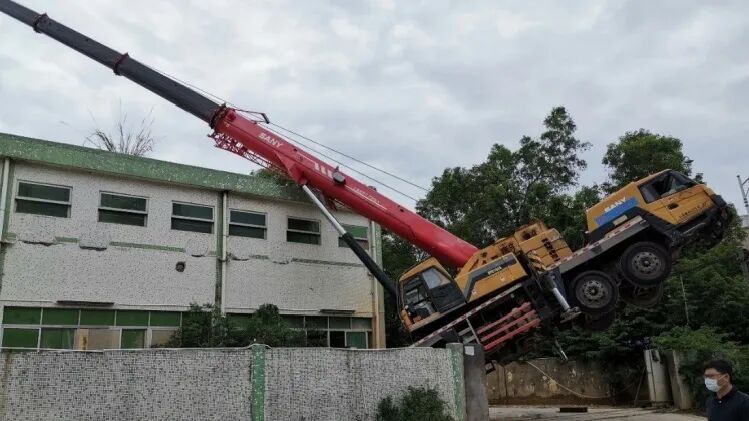 在起吊过程中,起重臂伸缩容易发生翻车。因为起重臂伸缩,是在给起重机增加负重,是在作“加法”,如果在此之前起重机已经满负荷,继续作“加法”则可能瞬间超载翻车。