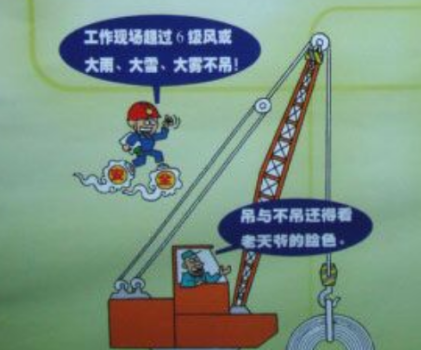 大雨、雾、大雪及六级以上大风等恶劣天气继续进行吊装作业。